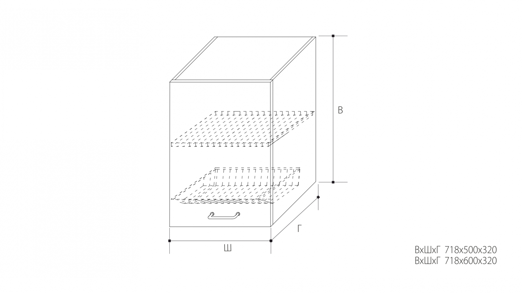 ВхШхГ: 718х500х320 мм.